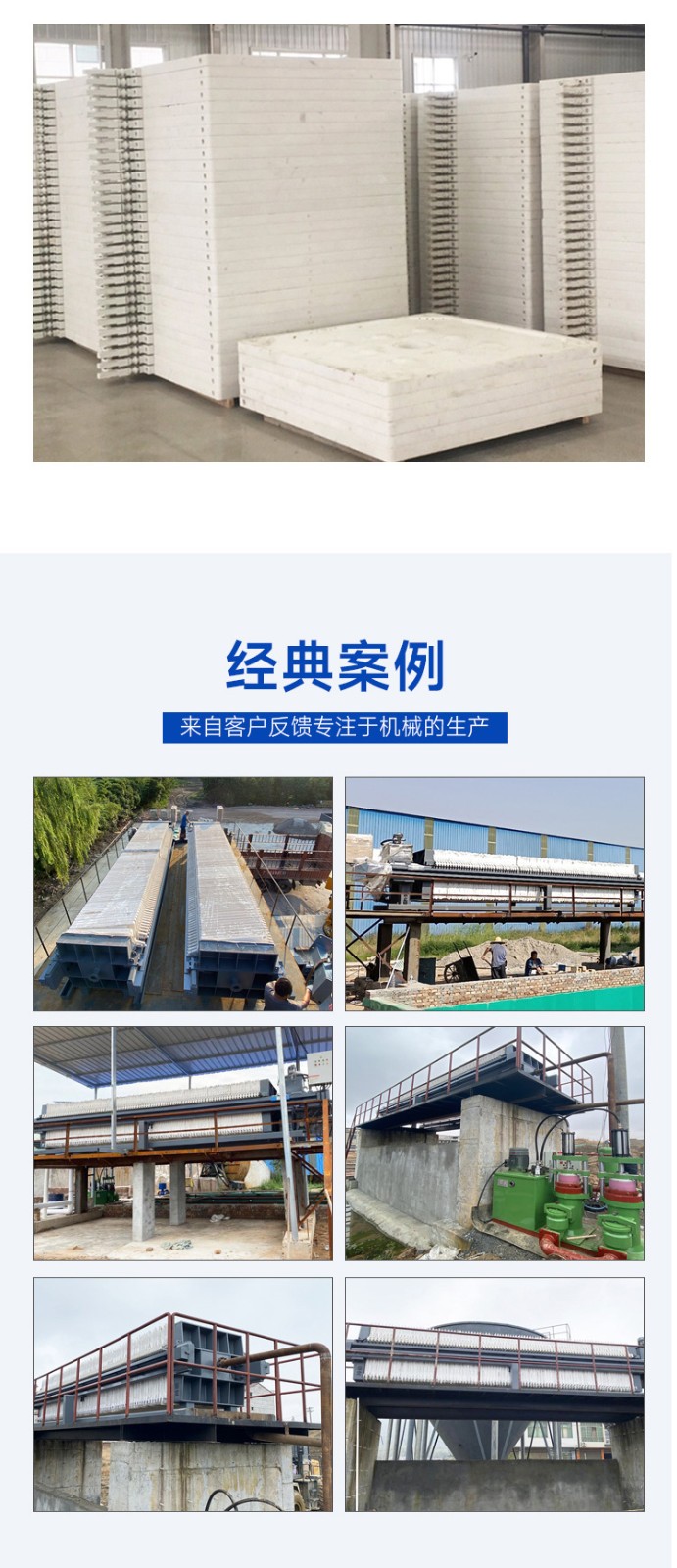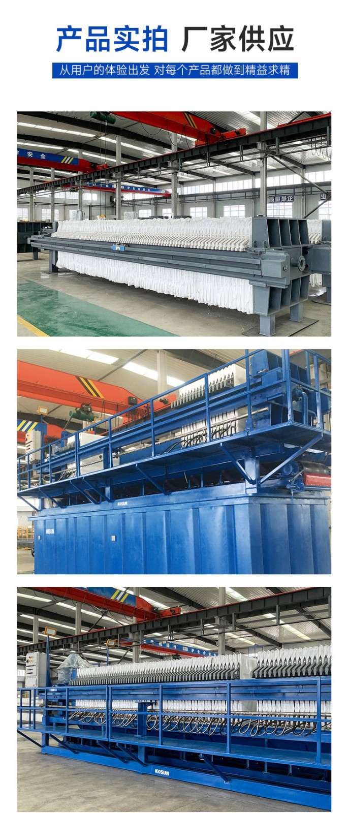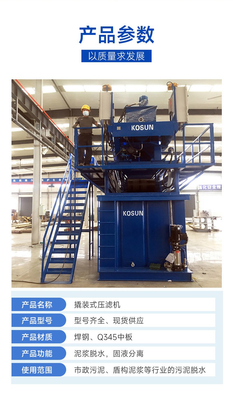 板框式壓濾機主要由止推板(固定濾板)、壓緊板(活動濾板)、濾板和濾框、橫梁(扁鐵架)、過濾介質(zhì)(濾布或濾紙等)、壓緊裝置、集液槽等組成,其中過濾介質(zhì)和集液槽由用戶自備,也可由供應(yīng)商代配。