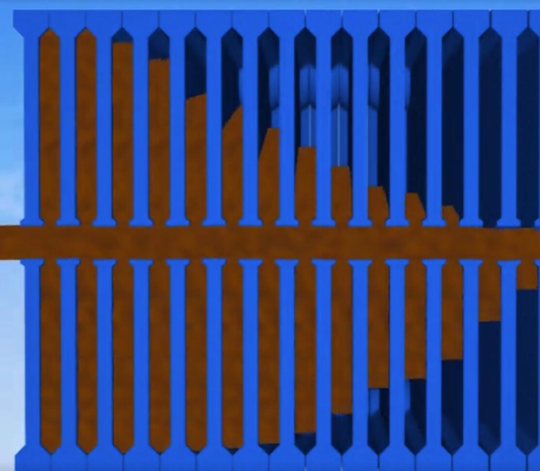 隔膜壓濾機工作流程:按下電氣柜控制系統(tǒng)的“壓緊”按鈕,液壓站開始工作,液壓油推送壓緊板向止推板方向移動,壓緊濾板,進入到保壓狀態(tài),進料泵開始輸漿,當漿料填充滿壓濾機的所有濾室的時候,液壓站的壓力開始提高。等到壓濾機停止進料時,向濾板的濾餅中通入高強壓力的氣體,進一步干燥過濾后的濾渣,從而可以減少濾渣之中的毛細水,結構水等。(前面兩個優(yōu)點的共同作用可以使壓濾機濾餅的水分降低到9%左右)。