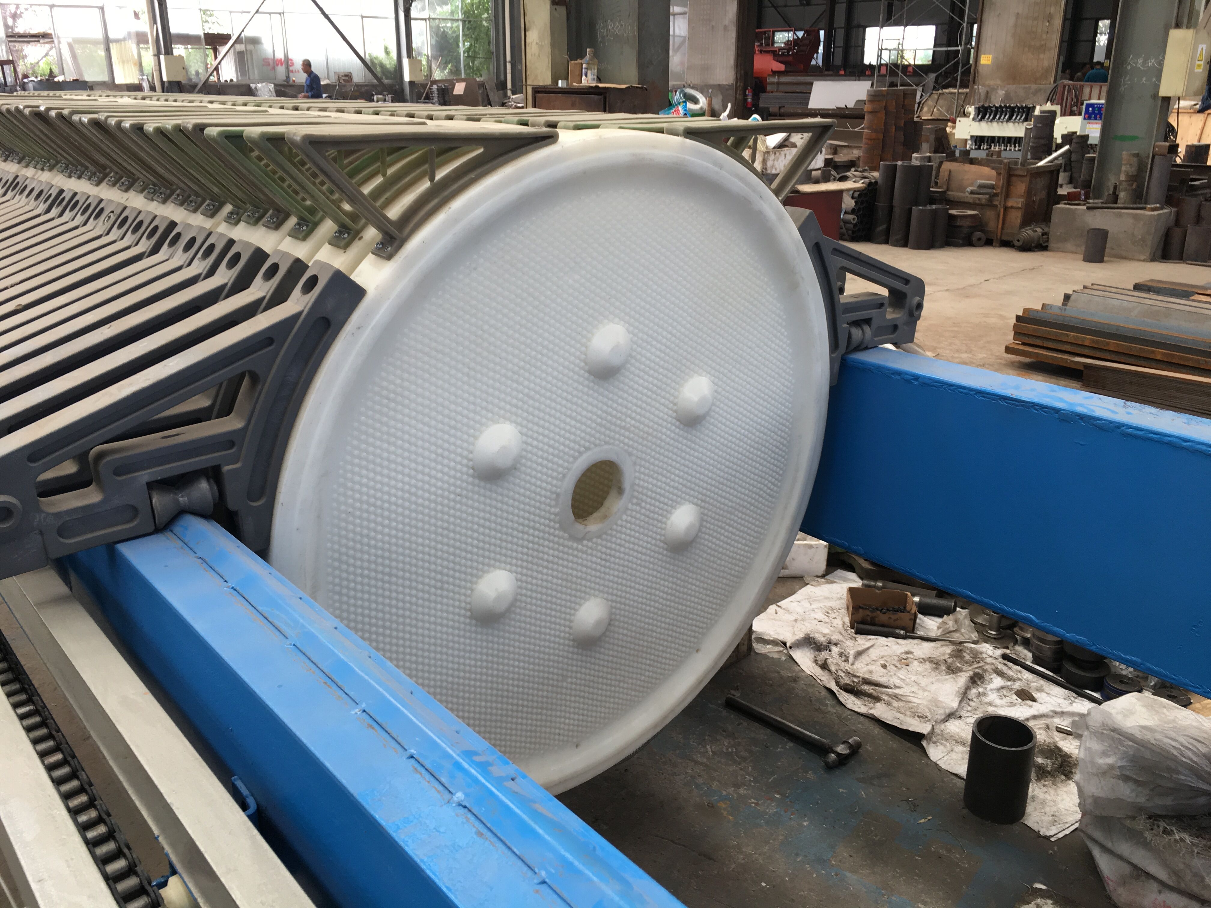 壓濾機(jī)過濾面積。由于設(shè)備過濾面積是由設(shè)備上的濾布決定的,而濾布有必須依附在濾板上,而為了讓濾板能承受強(qiáng)大的壓力,所以就限制了其厚度,當(dāng)一定厚度的濾板存在與設(shè)備過濾室的限量空間時,無形中就減少了設(shè)備本身提高的過濾面積量,當(dāng)過濾面積量受到限制時,其工作效率也會受到限制。